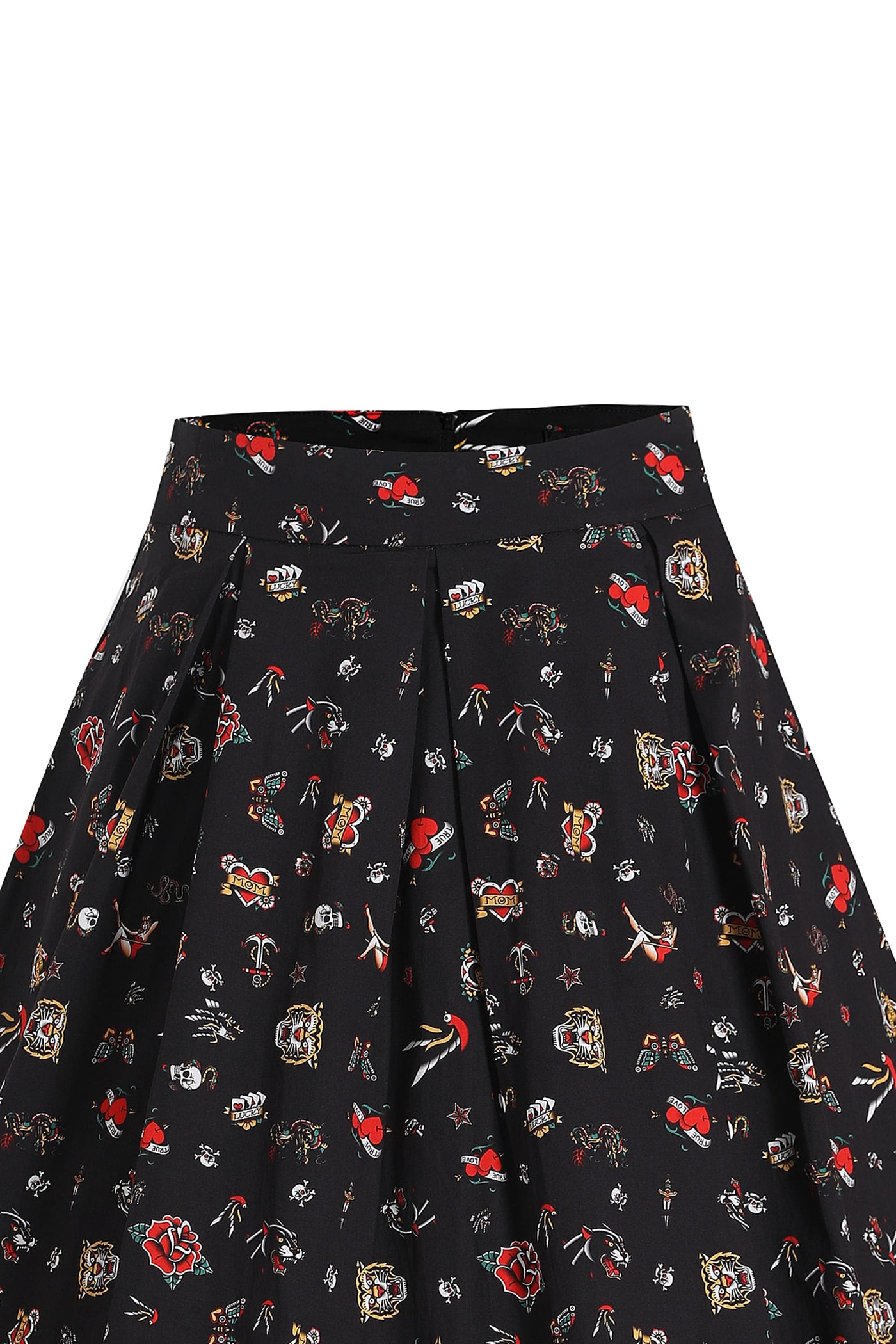 Rockabilly Old School Tattoo Print Swing Skirt