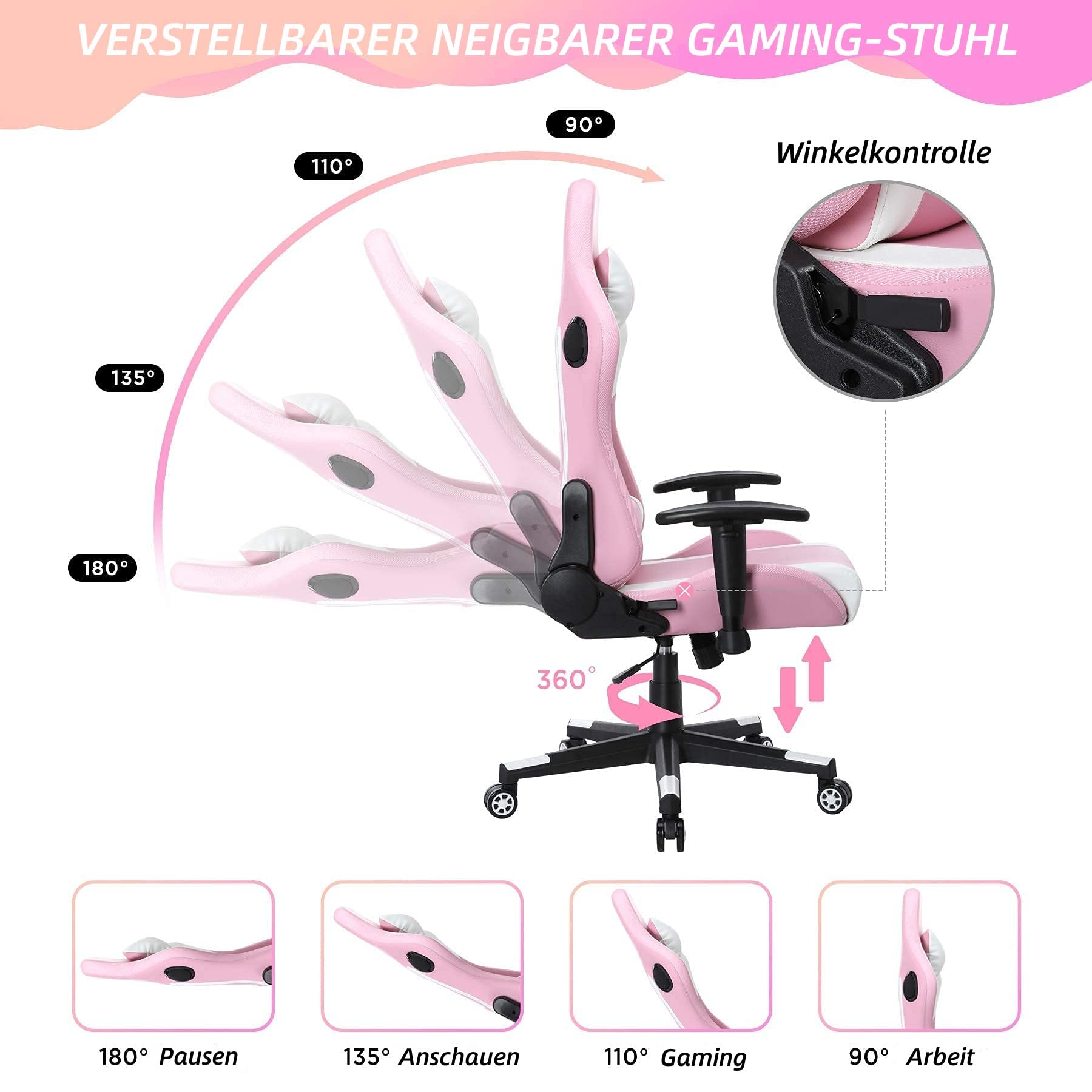 Gaming Chair With Rgb Led Lights And Speakers Video Game Chair Racing Computter Chair Pc Chair Made Of Pu Leather With High Backrest Ergonomic Office Chair With Headrest Lumbar Support Pink